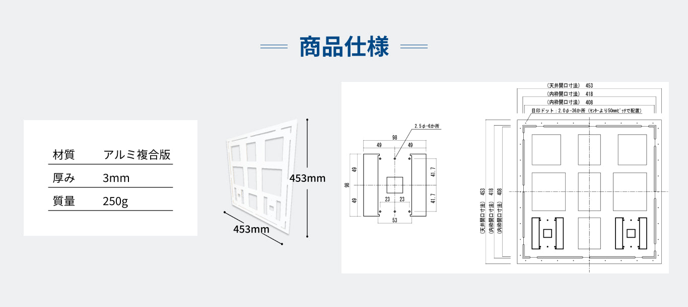 メーカー名 | 天井開口寸法 | 内枠開口寸法 |